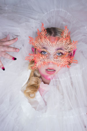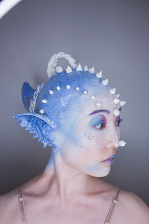 A coral face piece for Fama, a horn hair piece for Esperanza, a spike-y mask piece and a balloon neck wear for Cronopio